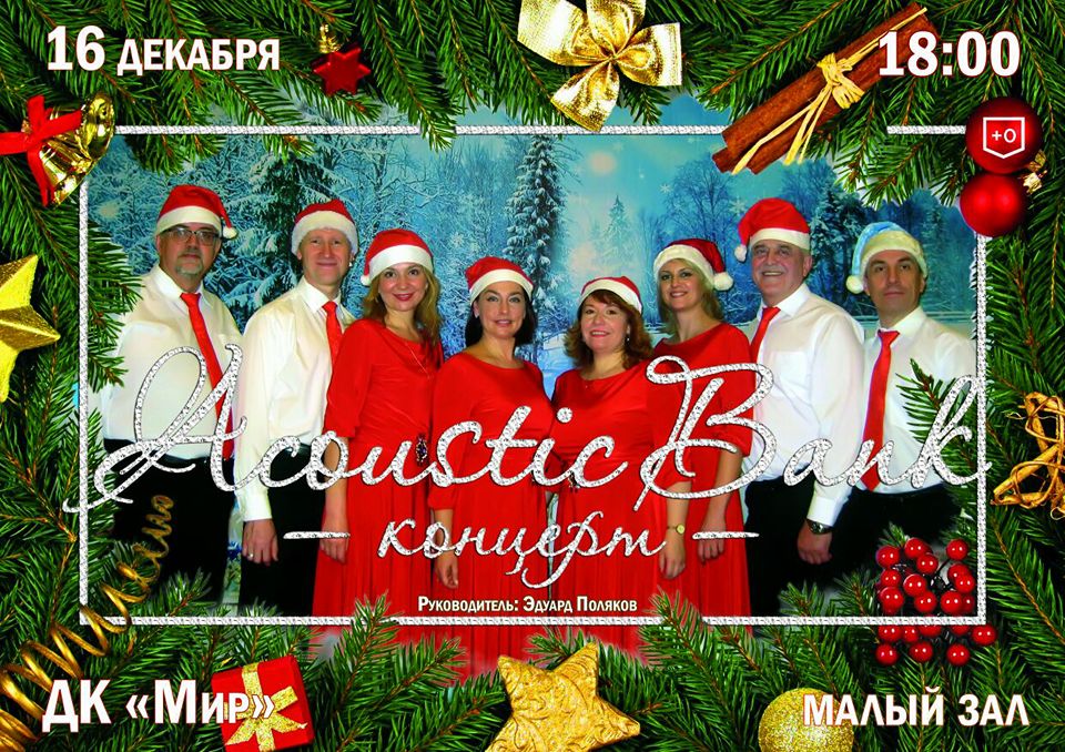 16 декабря 2017 г. в 18.00 часов Дом культуры «Мир» ОИЯИ приглашает на новогоднюю концертную программу вокального ансамбля «Acoustic Bank».