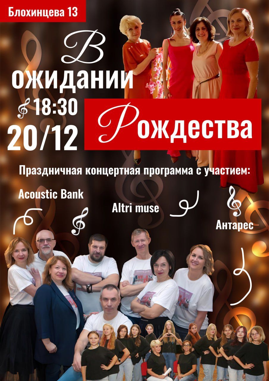 Праздничная концертная программа с участием ансамблей Acoustic Bank, Altri muse, Антарес. В программе классические и джазовые произведения, популярная музыка.