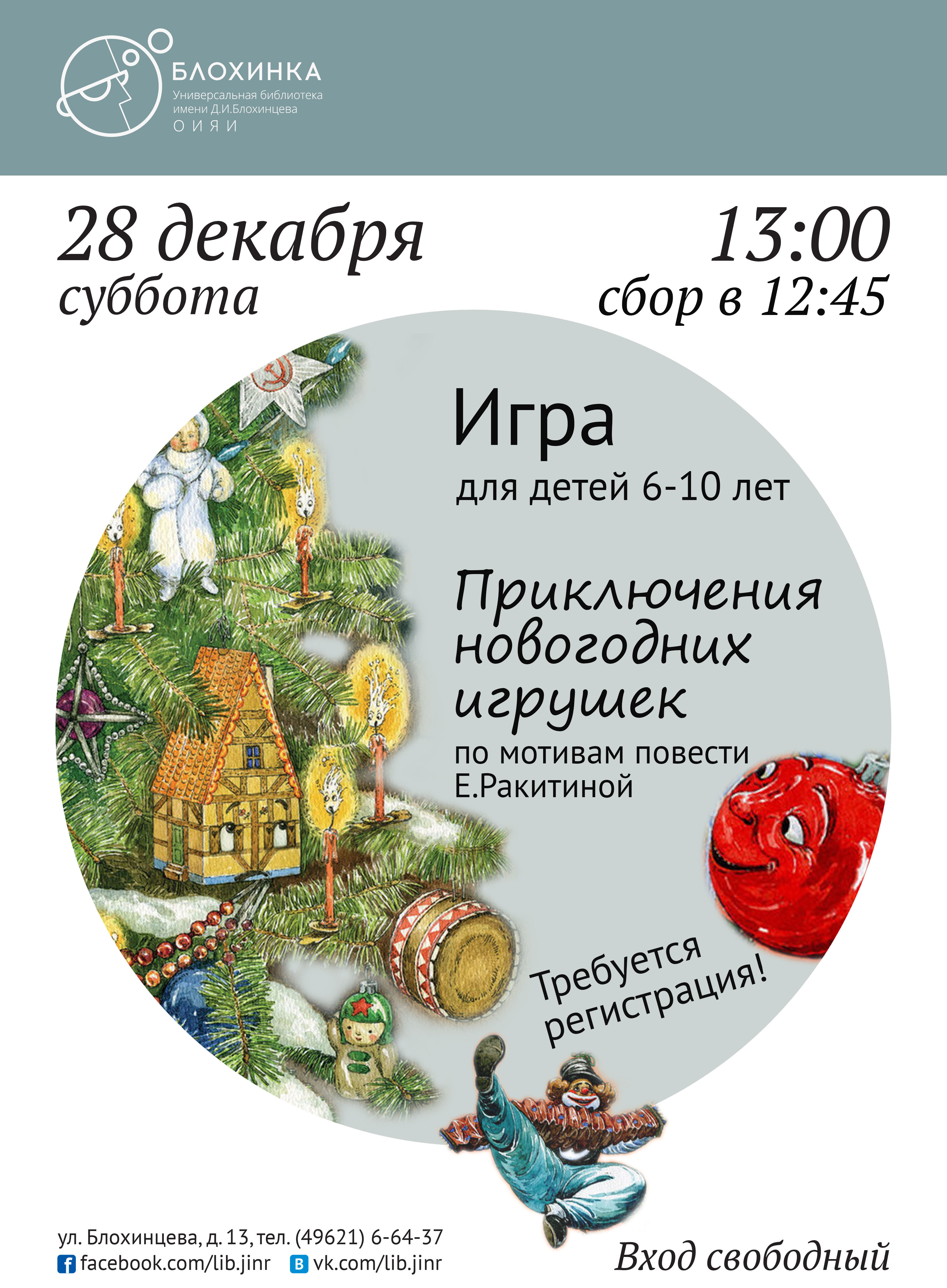 Универсальная библиотека ОИЯИ приглашает на новогоднюю игру для детей 6-10 лет.
