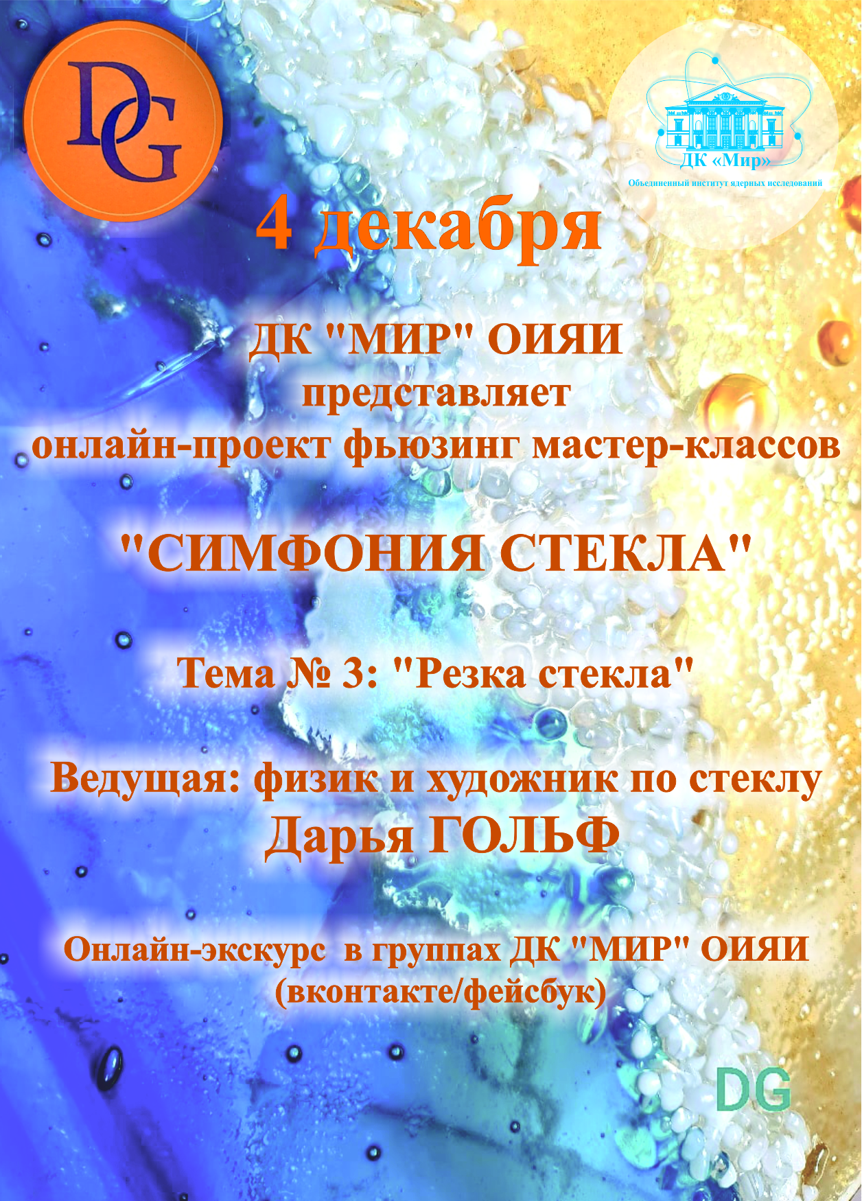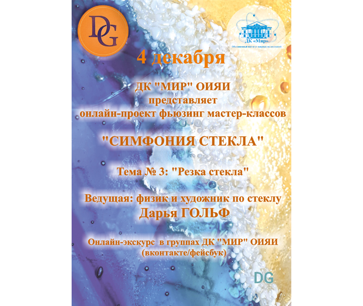 4 декабря 2020 г. Дом культуры «Мир» ОИЯИ продолжит серию фьюзинг мастер-классов «Симфония стекла».