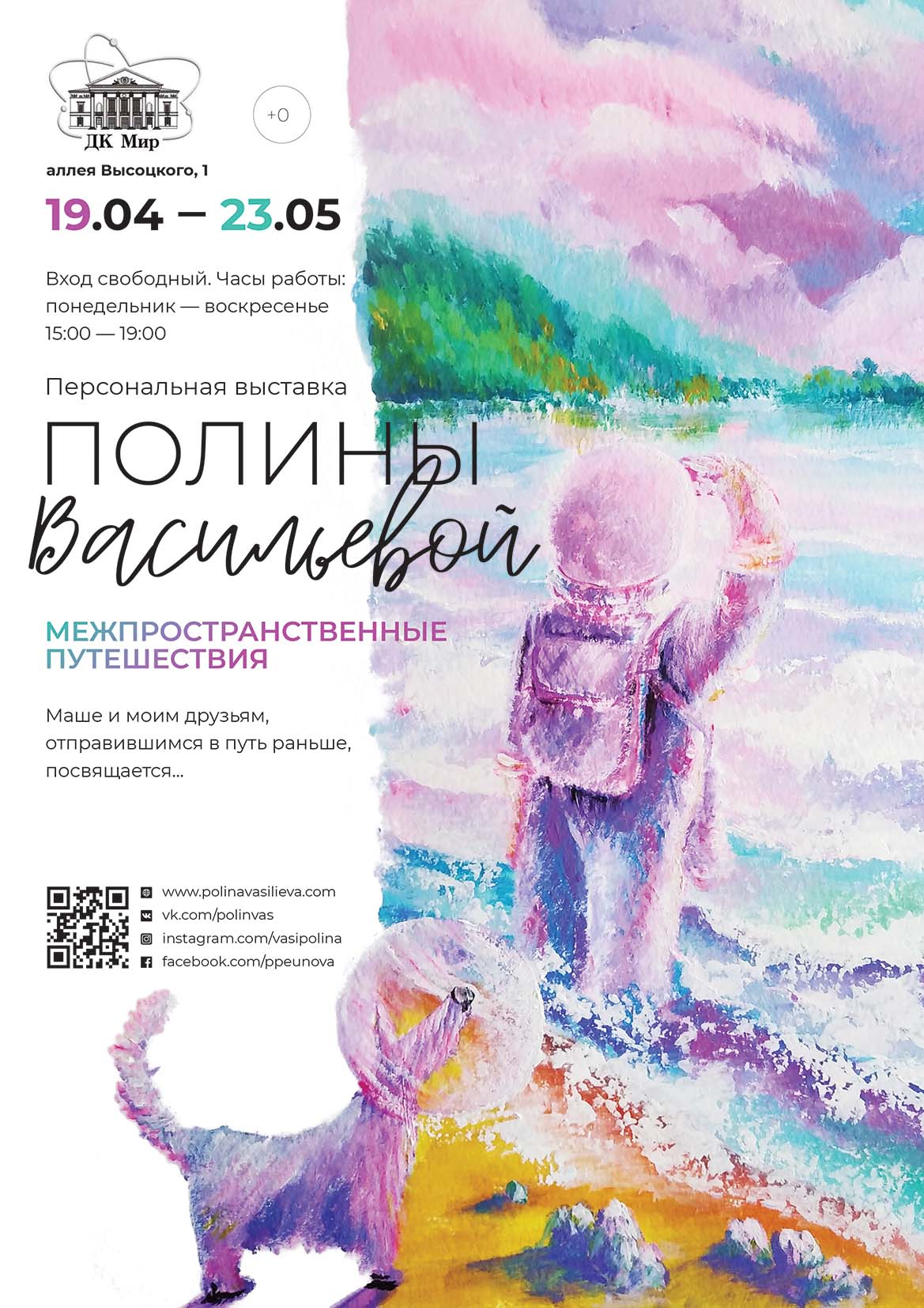 С 19 апреля по 23 мая 2021 г. в стенах Выставочного зала Дома культуры «Мир» ОИЯИ пройдет персональная выставка Полины Васильевой «Межпространственные путешествия».