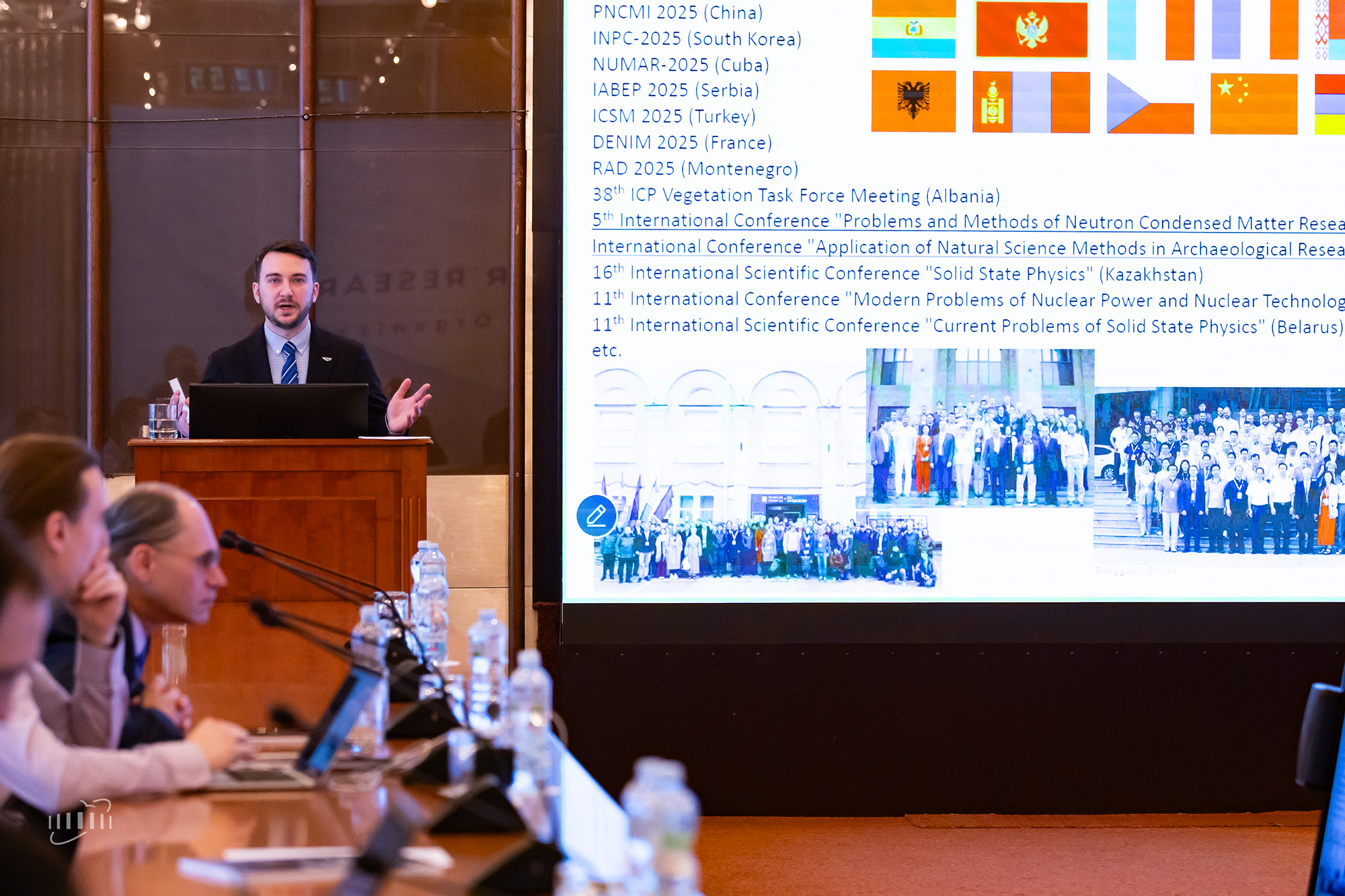 Ученый секретарь ЛНФ Александр Незванов представил итоги деятельности лаборатории по организации международных конференций и участию в них в 2025 году. Сотрудники лаборатории приняли участие в более чем 100 научных мероприятиях в 24, включая государства-члены и партнеры Института. Это дало ощутимый прирост внешних пользователей инструментов ИБР-2 из этих стран. В планах на 2026 год – проведение традиционных конференций: 32-го Международного семинара по взаимодействию нейтронов с ядрами (ISINN-32, Дубна) и Международной конференции по исследованиям конденсированного состояния на реакторе ИБР-2, посвященной 70-летию Института и 90-летию Ю. М. Останевича (CMR@IBR2-2026, Дубна). В рамках последней, впервые с 2022 года, состоится совещание пользователей ЛНФ.