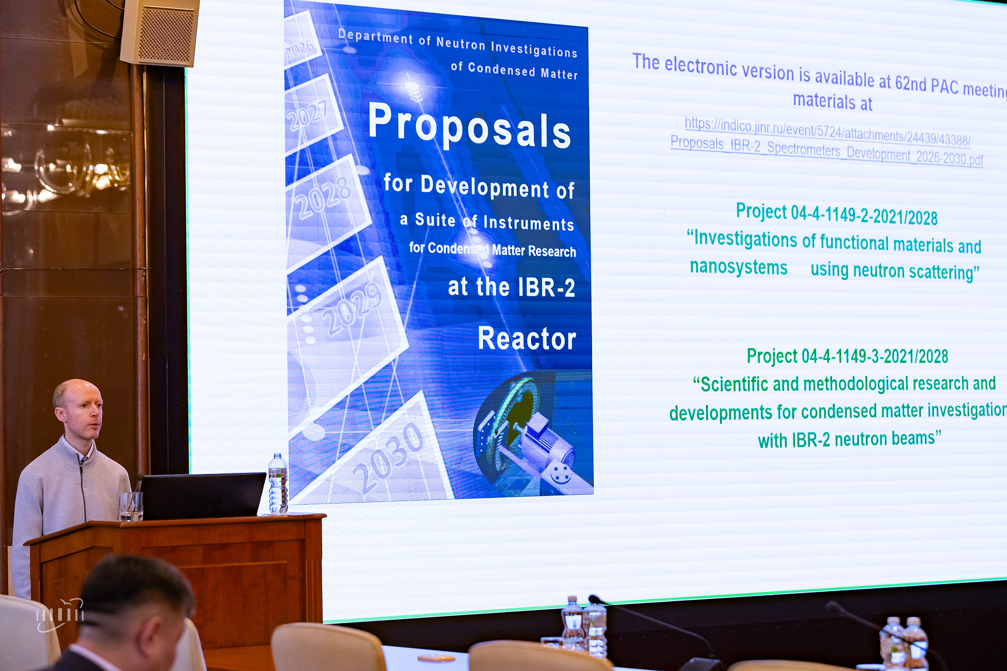 19-20 января 2026 года в Доме международных совещаний состоялась 62-я сессия Программно-консультативного комитета ОИЯИ по физике конденсированных сред. Члены ПКК обсудили возобновление пользовательской программы на реакторе ИБР-2, а также состояние и перспективы развития комплекса спектрометров реактора.
