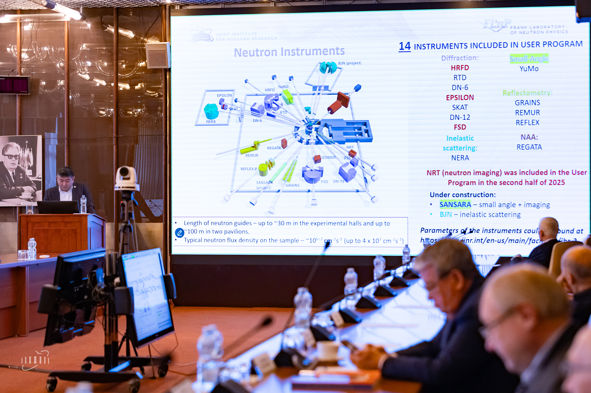 Первые результаты возобновления международной пользовательской программы исследований на реакторе ИБР-2 Лаборатории нейтронной физики ОИЯИ после его трехлетней остановки представил заместитель директора ЛНФ Багдаулет Мухаметулы. В весеннем цикле эксплуатации ИБР-2 в основном проводились тестовые эксперименты по проверке работоспособности различных систем спектрометров и уточнению их текущих технических характеристик. Были реализованы и некоторые научные эксперименты, что ускорило привлечение новых пользователей к программе. Осенью 2025 года было подано 114 заявок на проведение экспериментов, из них эксперты одобрили 101 заявку ученых из Армении, Беларуси, Египта, Китая, Российской Федерации, ЮАР и других стран. Самыми востребованными среди внешних пользователей стали установки ЮМО, ДРВ, ДН-12, РЕГАТА и РЕМУР. Данные результаты продемонстрировали успешное возвращение ИБР-2 в качестве ключевого инструмента ОИЯИ для нейтронных исследований. Продолжается работа по расширению спектра доступных методик в программе пользователей ЛНФ, укреплению международного сотрудничества и подготовке к следующему конкурсу приема заявок на эксперименты, запланированному на весну 2026 года.