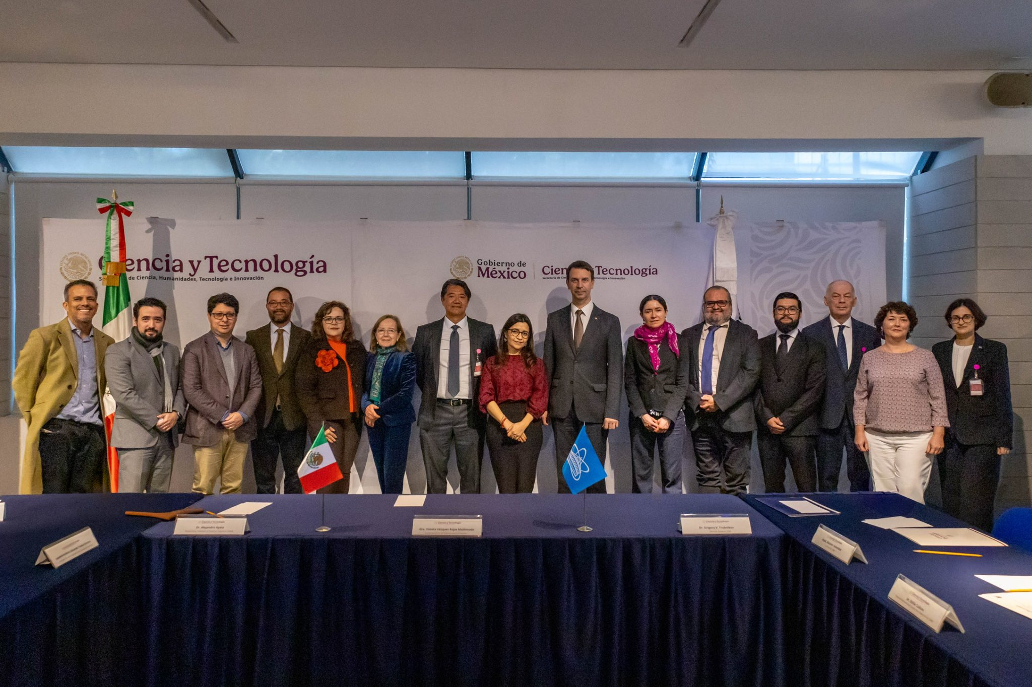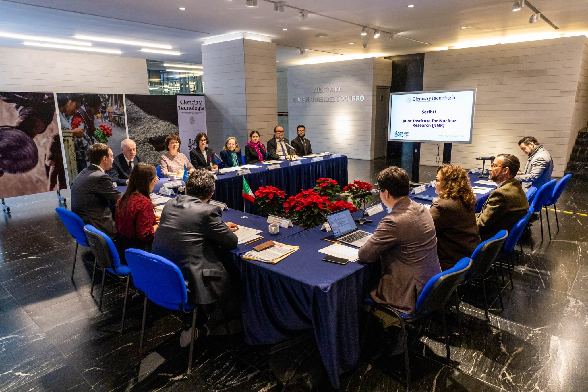 8 декабря в Мехико (Мексика) делегация ОИЯИ посетила Секретариат по науке, гуманитарным наукам, технологиям и инновациям (Secihti) – орган федеральной исполнительной власти Мексиканских Соединенных Штатов с функциями министерства науки и технологий. На встрече было подписано трехстороннее соглашение между ОИЯИ, Секретариатом и Институтом ядерных наук Национального автономного университета Мексики (UNAM) о расширении научного сотрудничества.