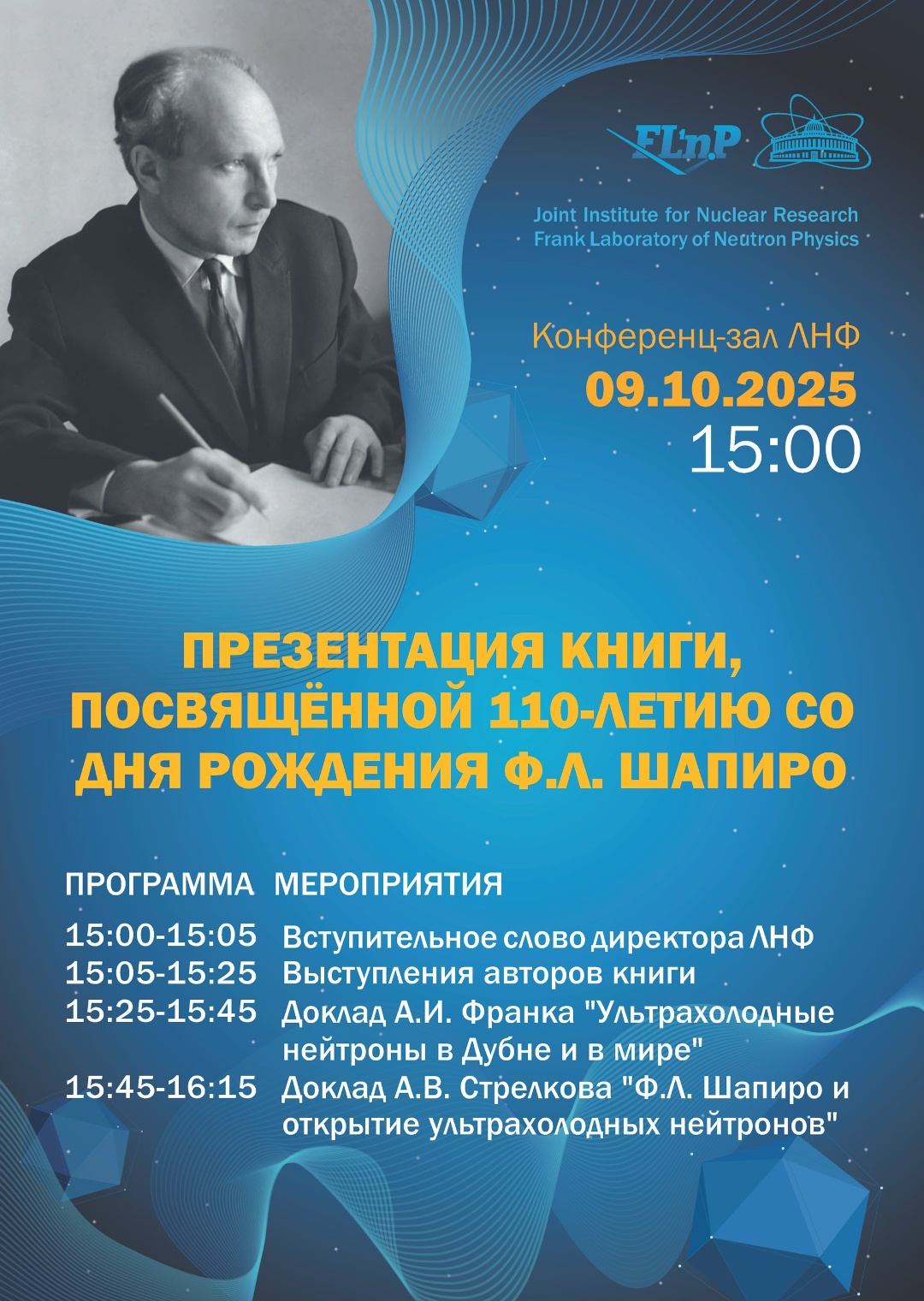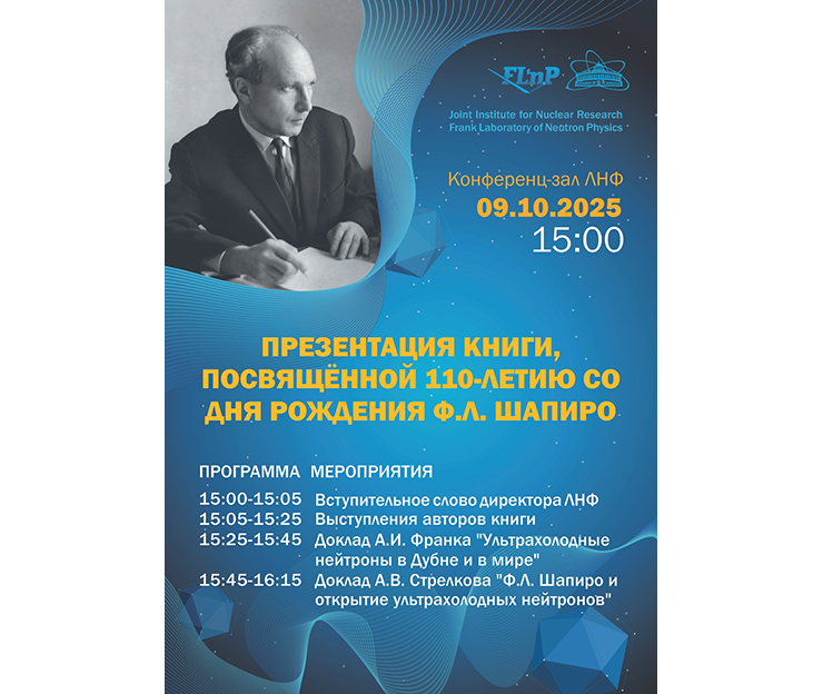 Лаборатория нейтронной физики им. И.М. Франка ОИЯИ invites everyone interested to a presentation of the book dedicated to the 110th anniversary of the FLNP JINR co-founder Fedor L. Shapiro.