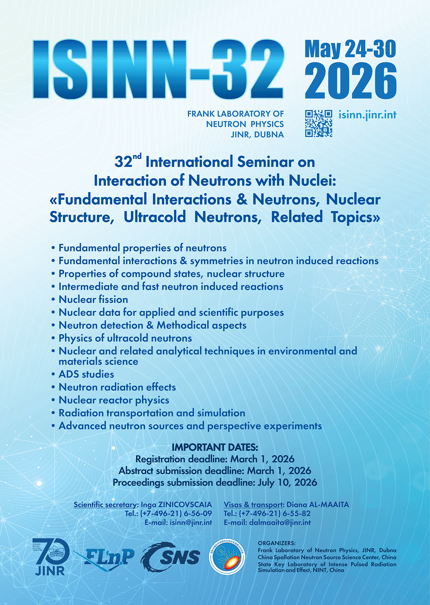 Зарегистрироваться на семинар и подать тезисы для выступления можно до 1 марта на странице ISINN-32 в Indico.