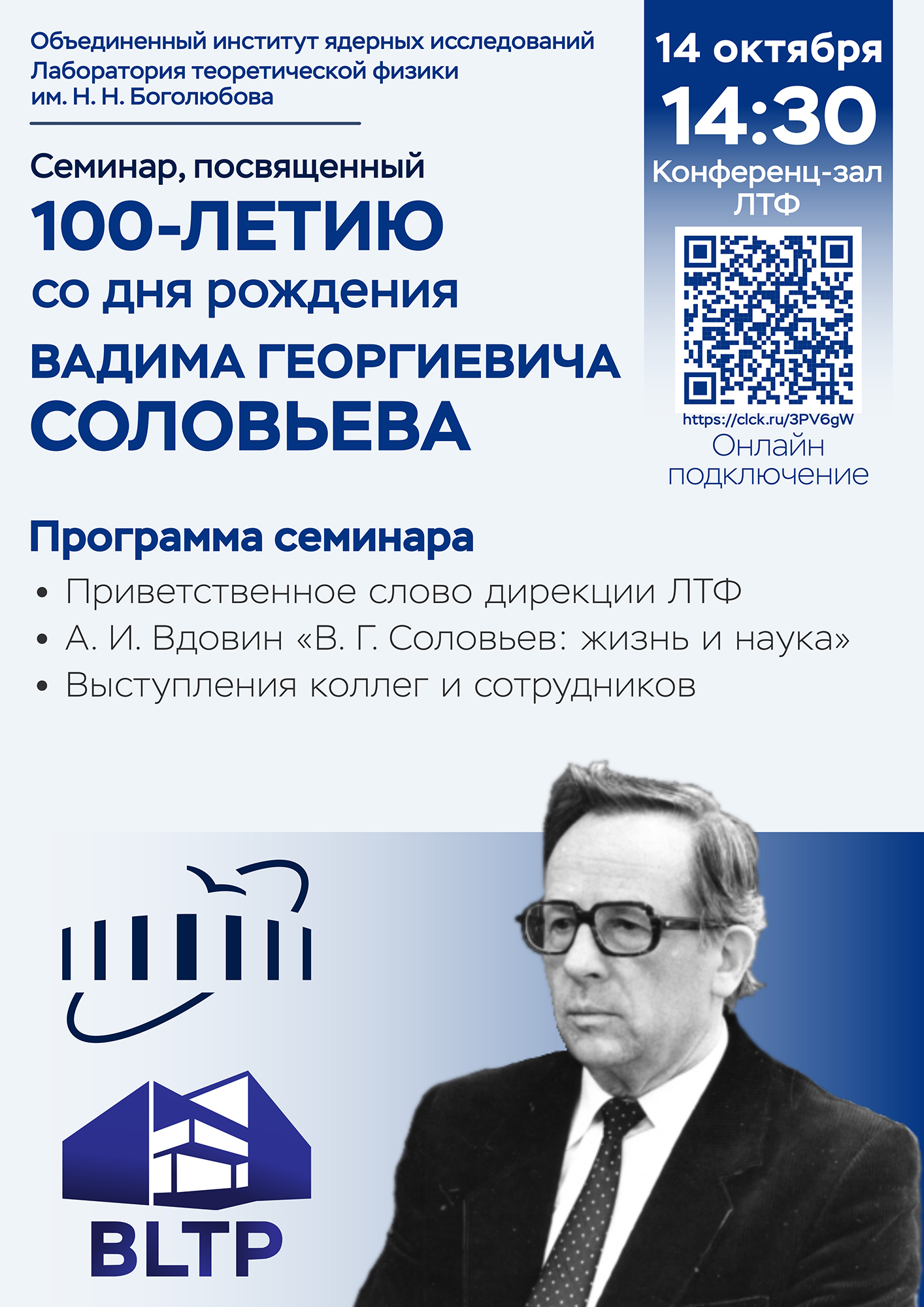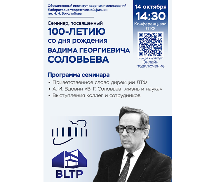 14 October 2025, 2:30 PM. Conference Hall of the Bogoliubov Laboratory of Theoretical Physics, Dubna