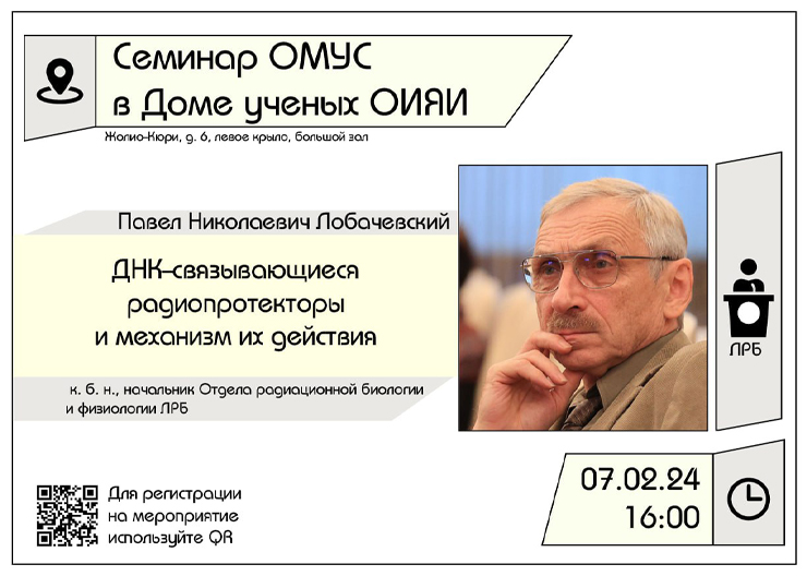 Кандидат биологических наук, начальник Отдела радиационной биологии и физиологии ЛРБ ОИЯИ Павел Лобачевский выступит с лекцией «ДНК-связывающиеся радиопротекторы и механизм их действия».
