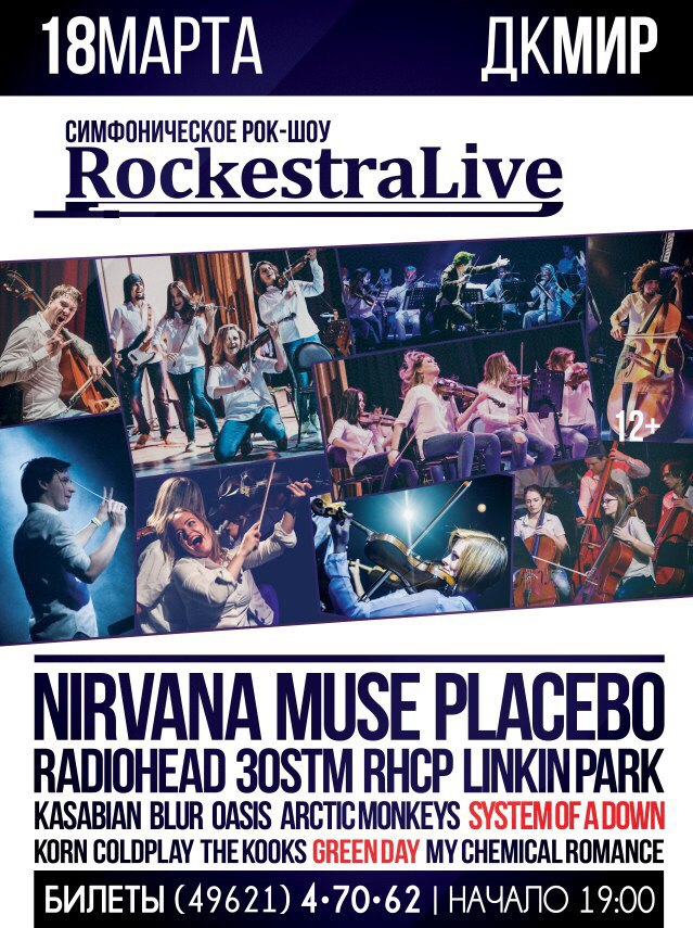 Дом культуры «Мир» ОИЯИ приглашает 18 марта 2017 г. в 19.00 часов на симфоническое рок-шоу RockestraLive.