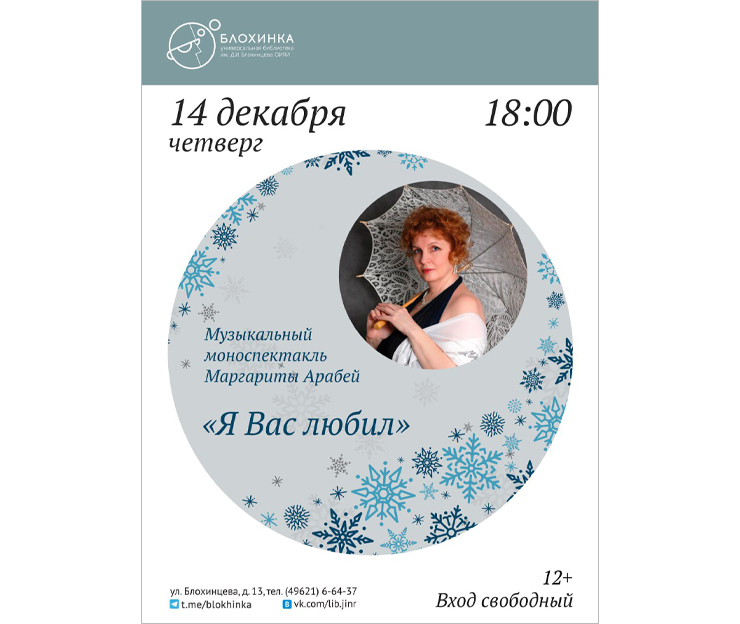The JINR Universal Public Library invites you to a musical solo performance “I Loved You” by Margarita Arabei.