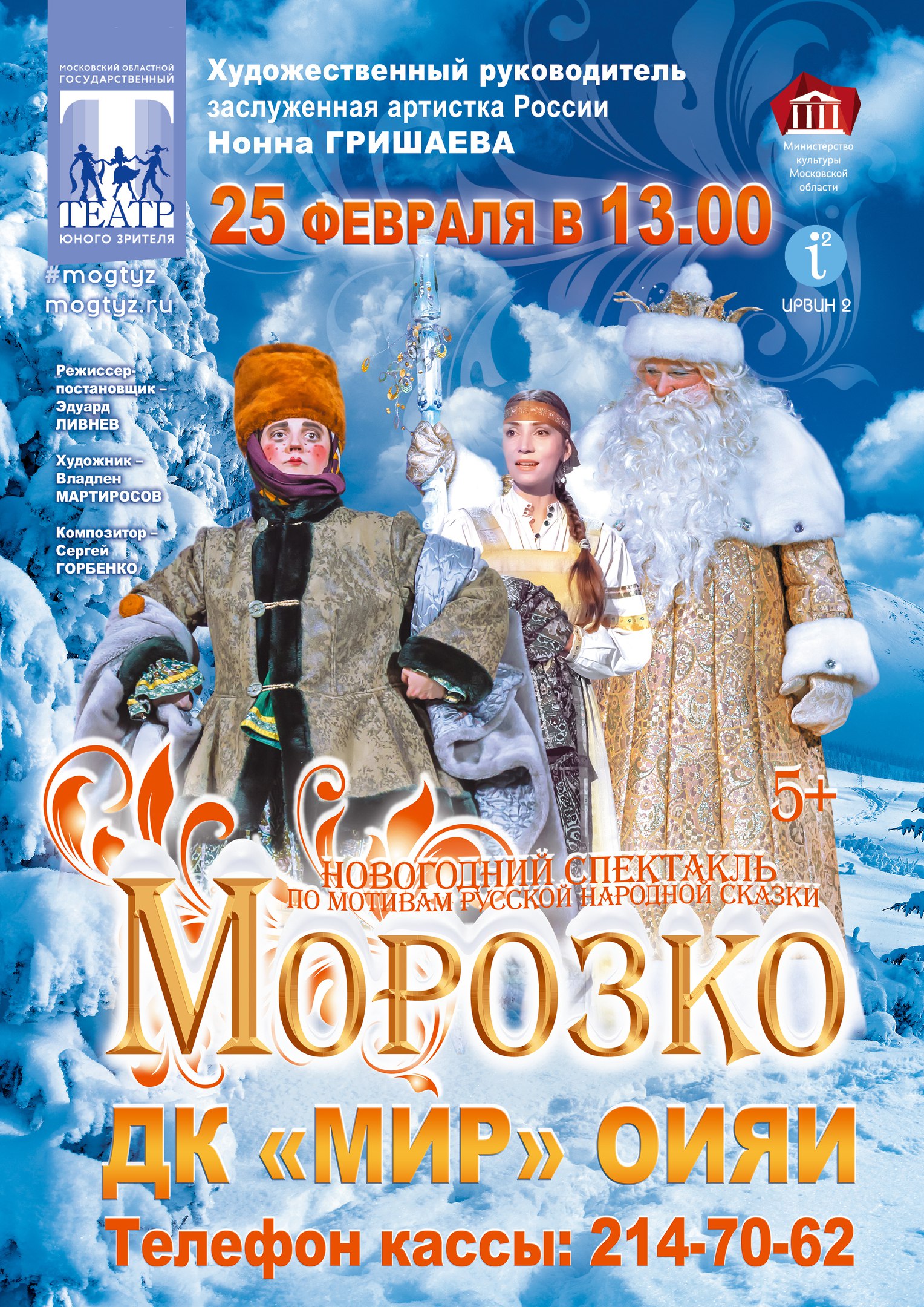 Дом культуры «Мир» ОИЯИ приглашает на спектакль «Морозко» по мотивам русской народной сказки, который состоится 25 февраля 2018 г. в 13:00 часов.