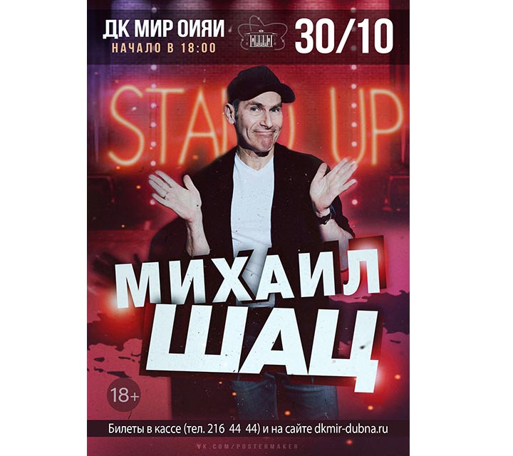 On 30 October 2021 at 6:00 PM the Stand UP by the comedian Mikhail Shatz will be held in the JINR Cultural Centre “Mir”.