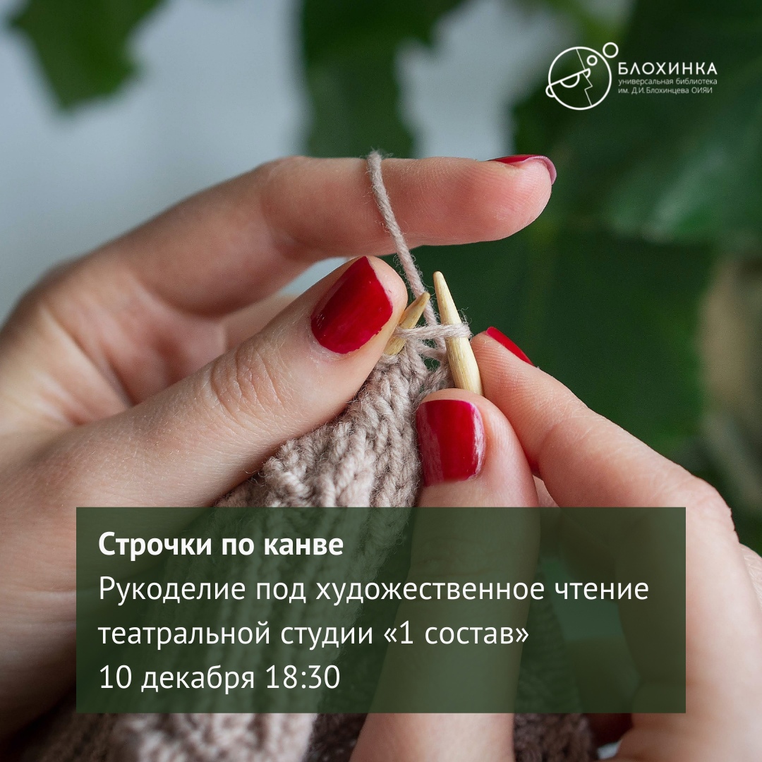 Универсальная библиотека ОИЯИ приглашает взрослых и подростков от 12 лет на собрание клуба рукоделия под художественное чтение «Строчки по канве».