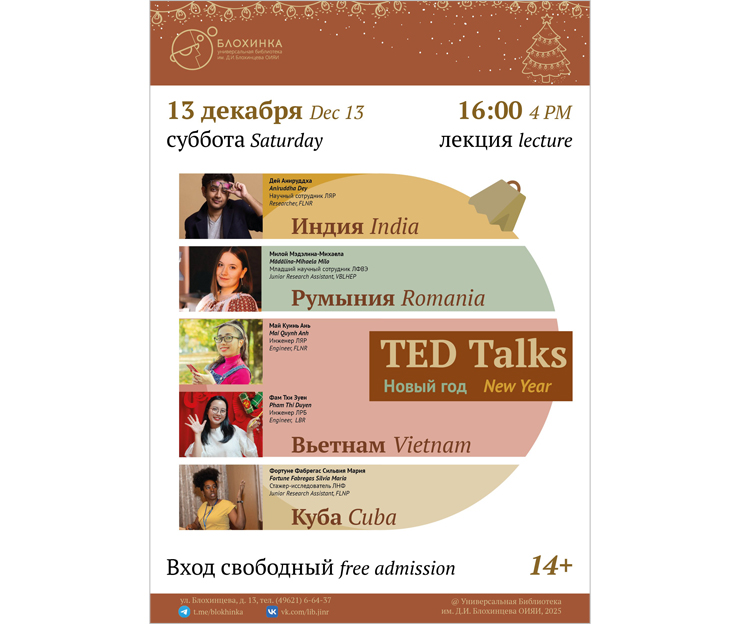 The JINR Universal Public Library invites visitors to the TED Talks: New Year Around the World lecture.