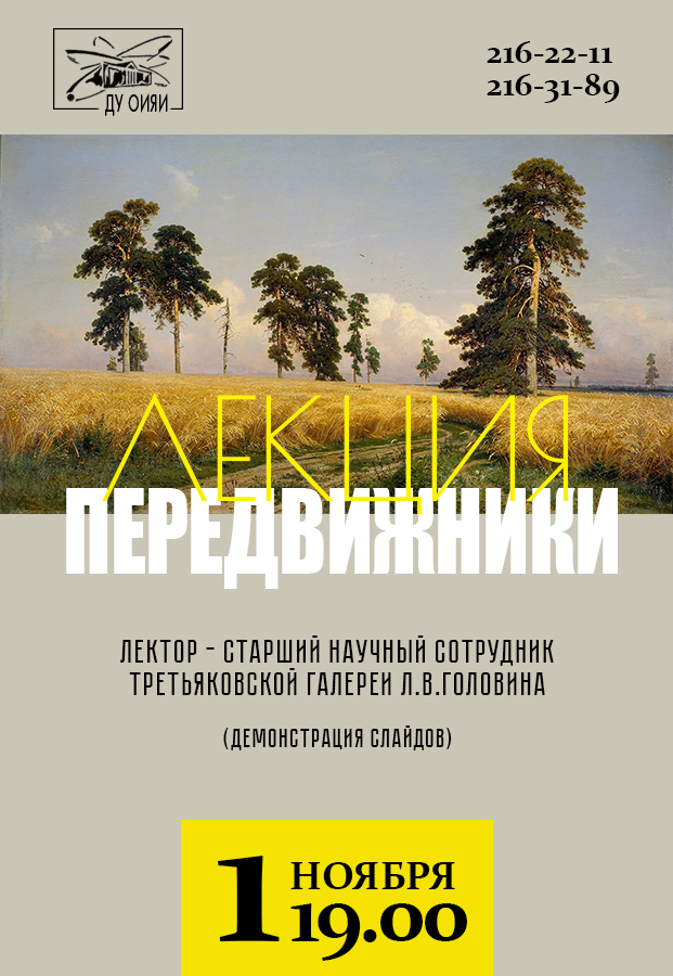 On Friday, 4 October 2024, at 7:00 PM, the JINR Scientists’ Club invites everyone interested to the lecture titled Peredvizhniki (The Wanderers).