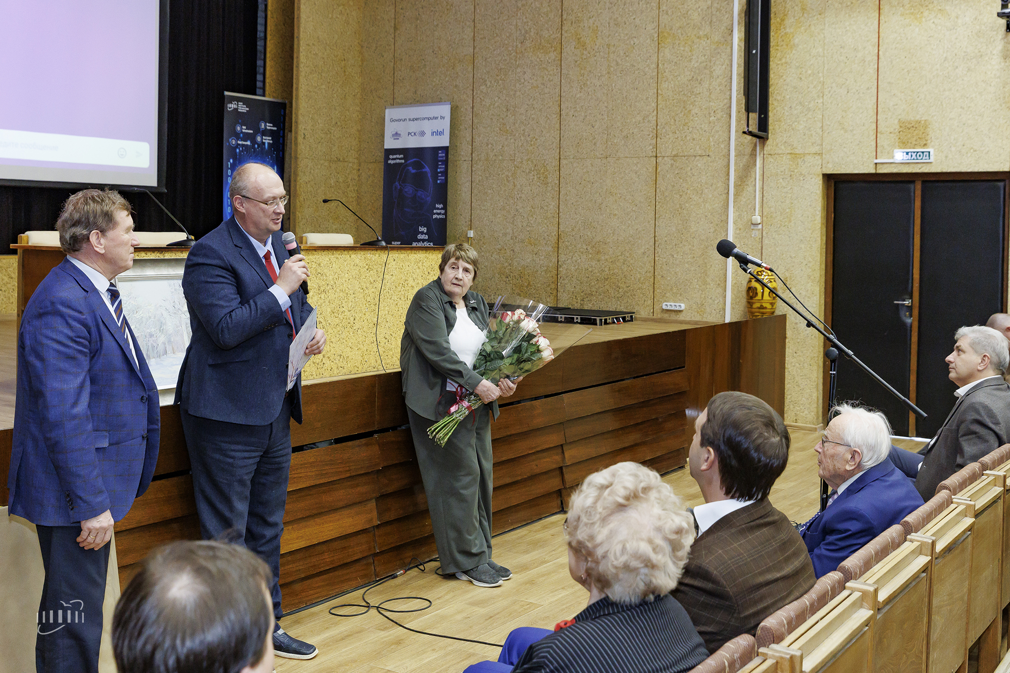 В приветственном слове директор ОИЯИ Григорий Трубников отметил, что одной из главных черт юбиляра, позволяющих ему до самых глубоких лет держать строй, является любознательность: «У вас есть интерес, есть настроение не просто жить, не просто двигаться, а двигаться энергично. Я хотел бы выразить от имени всех сотрудников и от имени ваших учеников, к коим тоже себя отношу, слова огромной благодарности за все, что вы делаете в своей жизни. Вы значимая фигура, масштабом содеянного вы оставили в Институте след гораздо серьезный и яркий», — заключил Григорий Трубников.