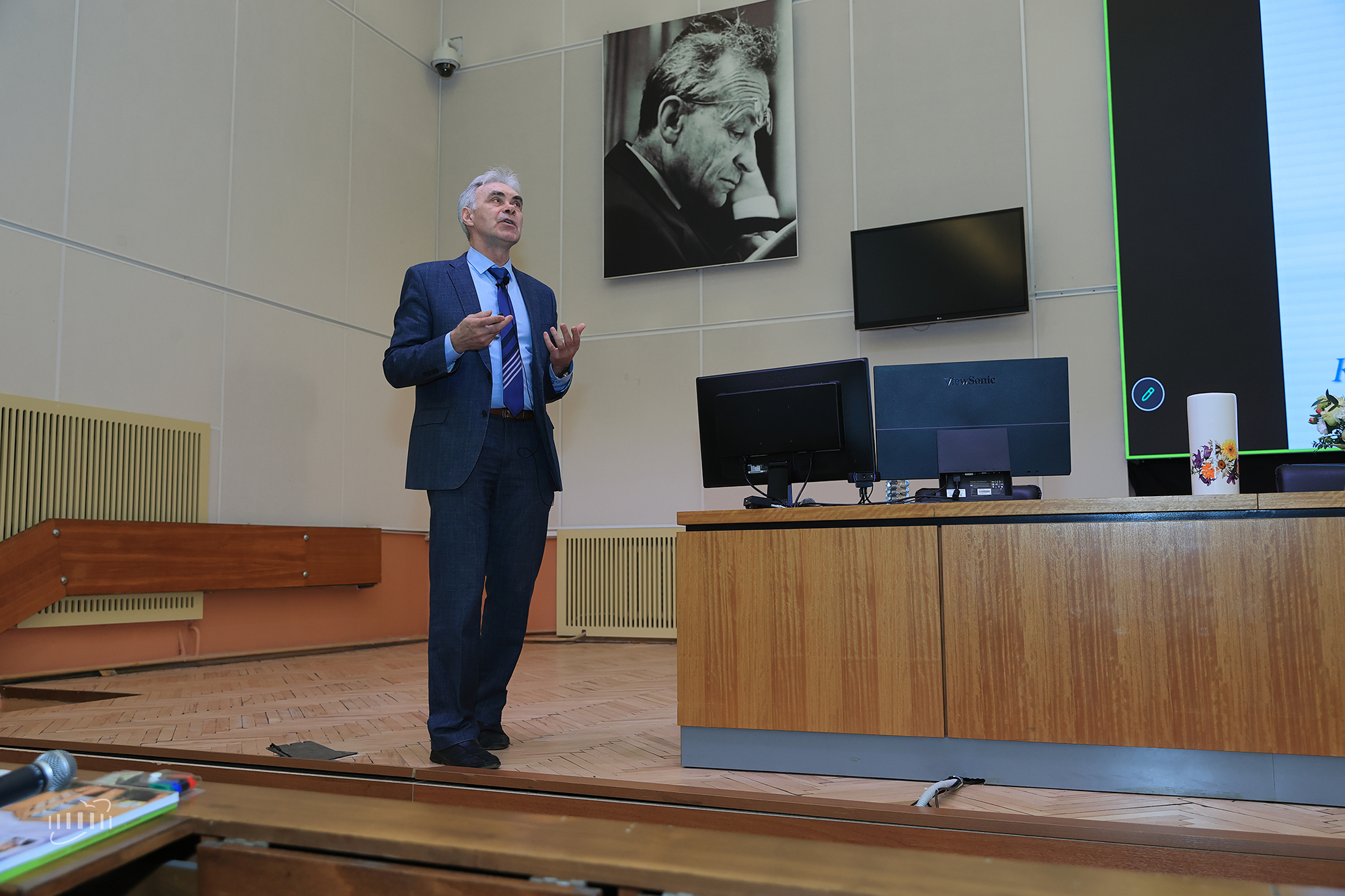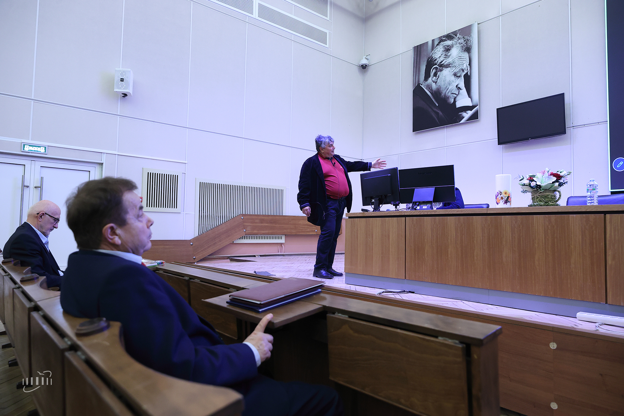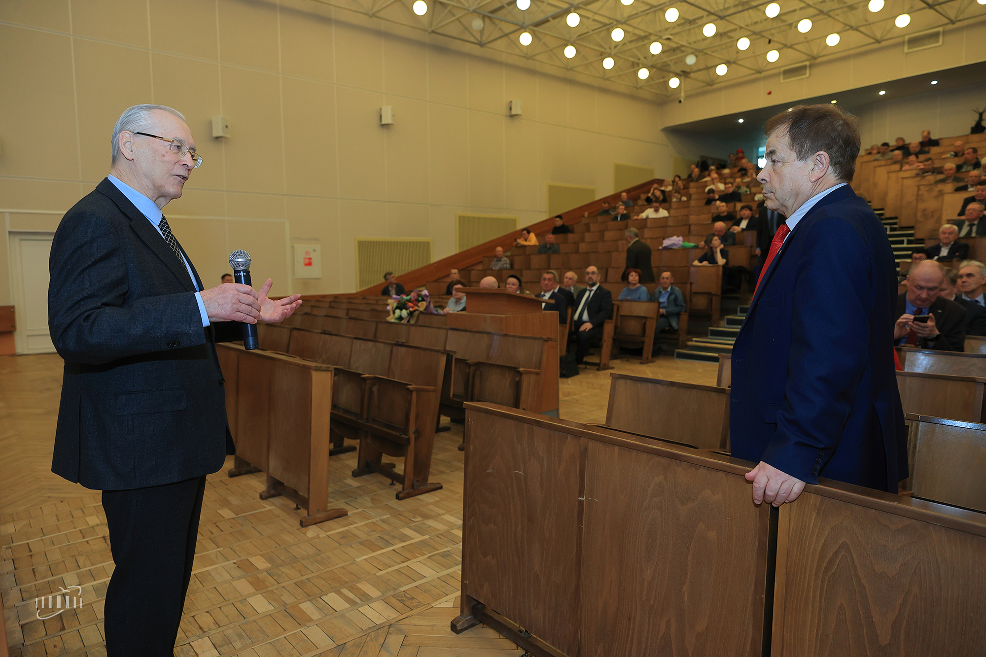 Исполняющий обязанности директора ЛФВЭ Андрей Бутенко зачитал поздравительный адрес от коллектива лаборатории: «Ваша жизнь — это яркий пример служения высоким идеалам науки. Благодаря вашим организаторским усилиям и настойчивости сотрудники ЛВЭ становились полноправными участниками ключевых международных коллабораций на базе ЦЕРН. Нельзя переоценить ваш личный вклад в формирование научной смены. На протяжении многих лет Вы читаете лекции студентам, руководите работой диссертационного совета лаборатории, направляете молодых ученых на путь самостоятельных открытий. ваши исключительные человеческие качества — внимательность к коллегам, неизменная доброжелательность и чувство юмора — заслужили глубокое уважение и искреннюю признательность всего коллектива».