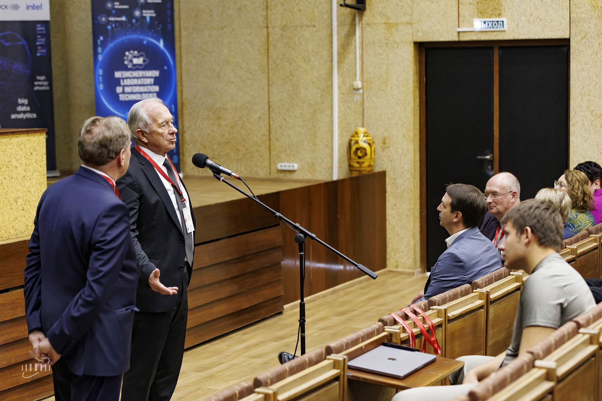 Научно-образовательную программу первого дня открыл доклад научного руководителя ЛИТ ОИЯИ Владимира Коренькова, посвященный методам обработки данных в гетерогенных вычислительных средах и достижениям ЛИТ в развитии IT-инфраструктуры. О применении компьютинга в области физики высоких энергий и значении информационных технологий для современных экспериментов рассказал Сергей Шматов. Помощник президента НИЦ «Курчатовский институт» Василий Велихов выступил с лекцией о развитии национальной сети компьютерных телекоммуникаций для науки и высшей школы России.