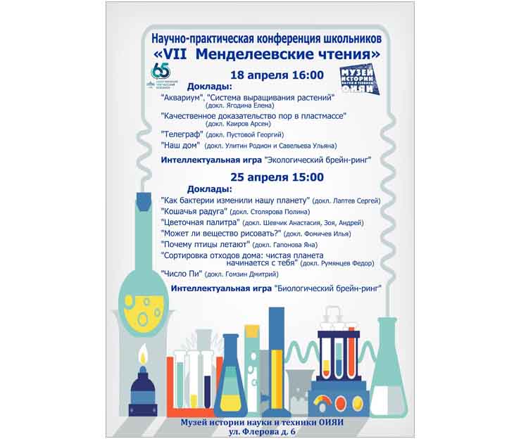 On 18 and 25 April, the Scientific and Practical Conference for schoolchildren “VII Mendeleev readings” will be held in the Museum of History of Science and Technology of JINR.