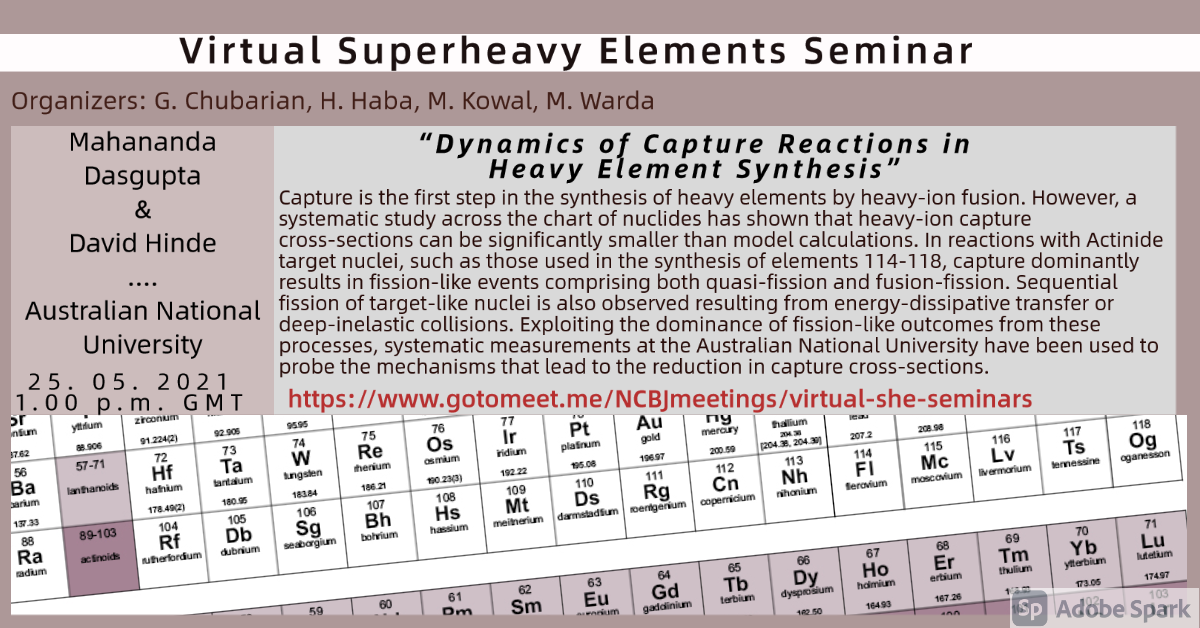 Despite the difficulties caused by the coronavirus pandemic slowing down the international collaboration and in-person contacts, the investigations of superheavy elements and publishing new results were continuing. As scientists cannot meet during any conference, the National Centre for Nuclear Research (NCBJ, Poland) has decided to create a series of virtual talks dedicated to the research on superheavy nuclei (SHE).