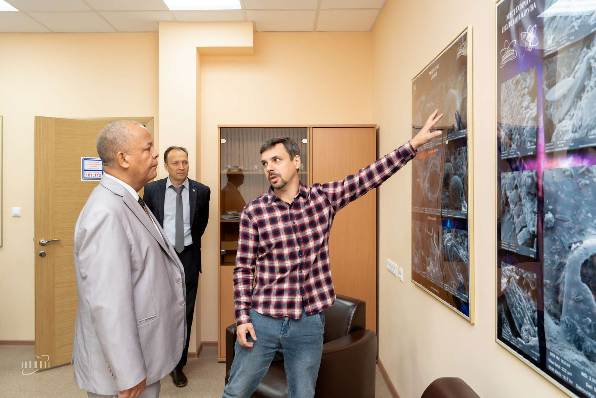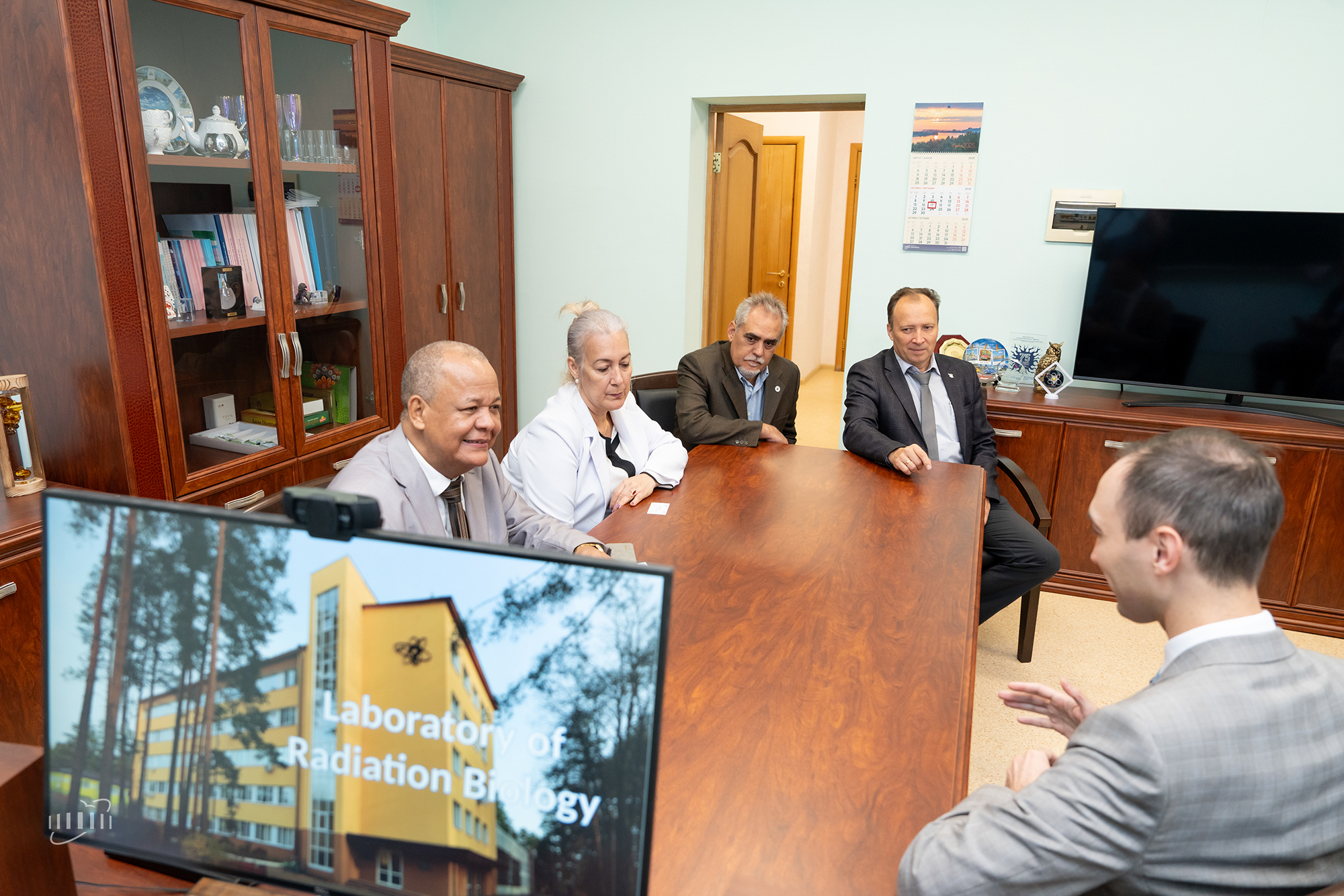 Знакомство с научной инфраструктурой Института началось с экскурсии в Лабораторию ядерных реакций, где кубинские представители ознакомились с работой наноцентра и посетили зал циклотрона У-400. В Лаборатории радиационной биологии делегаты побывали в отделах медицинской радиобиологии, радиационной физиологии и астробиологии.