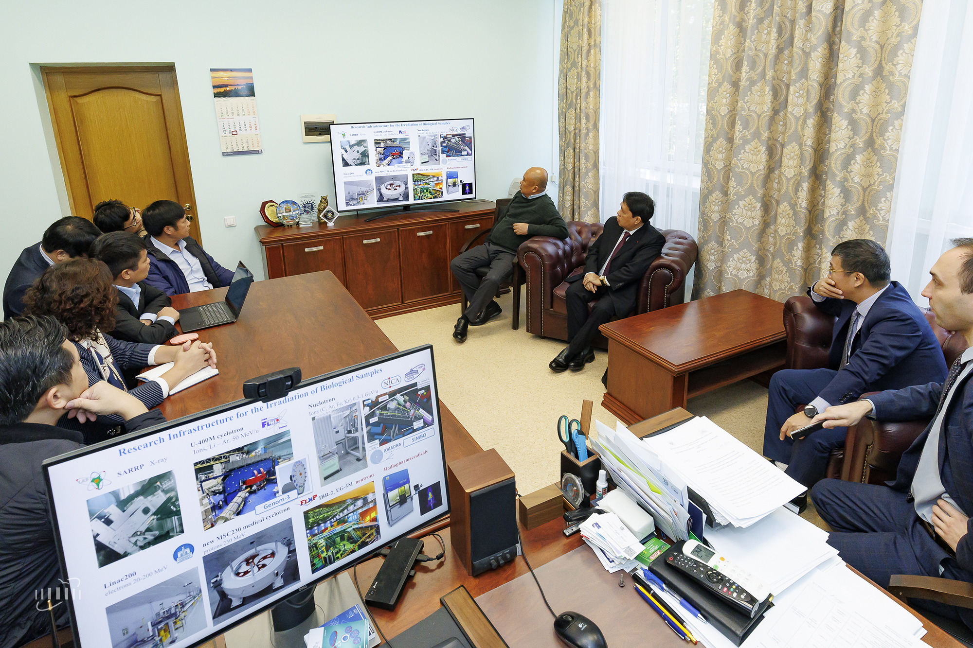 Программа рабочего визита началась с ознакомления с научной инфраструктурой ОИЯИ. Делегация посетила Лабораторию радиационной биологии, экспериментальный зал импульсного реактора ИБР-2М в Лаборатории нейтронной физики им. И. М. Франка и Центр прикладной физики в Лаборатории ядерных реакций им. Г. Н. Флерова.