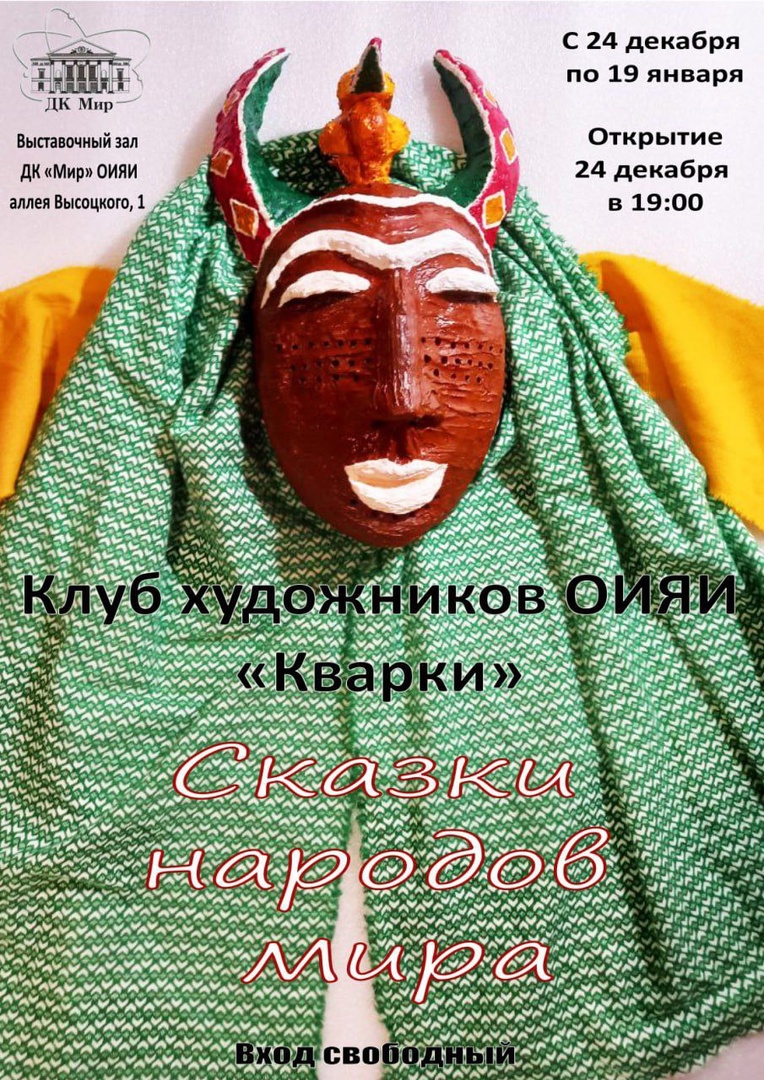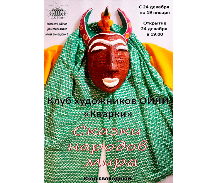 С 24 декабря 2024 по 19 января 2025 года Дом культуры «Мир» ОИЯИ приглашает посетителей на новую выставку Клуба художников ОИЯИ «Кварки» под названием «Сказки народов Мира».