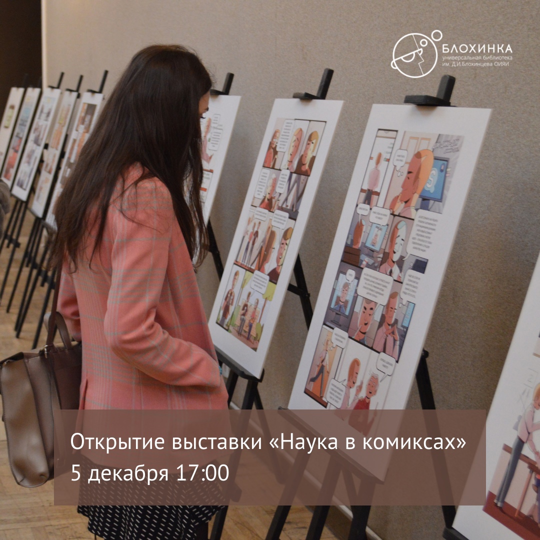 С 5 декабря 2021 г. по 10 января 2022 г. в зале Универсальной библиотеки им. Д. И. Блохинцева ОИЯИ (ул. Блохинцева, 13/7) будет проходить выставка «Наука в комиксах».
