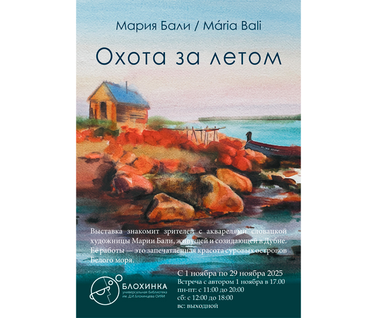 From 1 to 29 November 2025, the JINR Universal Public Library invites visitors to the watercolour exhibition by Maria Bali.