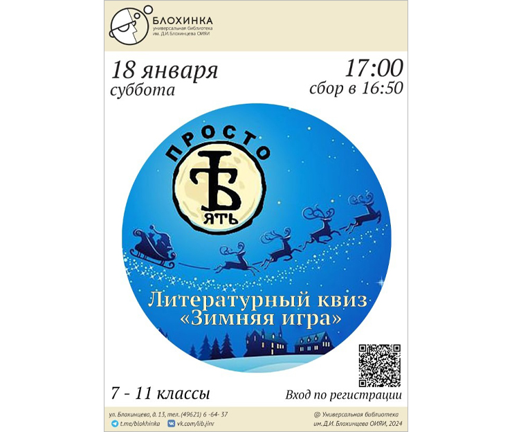 Универсальная библиотека ОИЯИ приглашает учеников 7-11 классов к участию в зимней литературной игре от команды «Просто Ѣ».