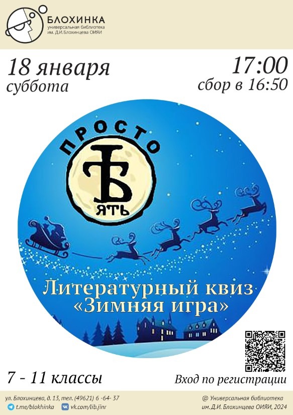 Универсальная библиотека ОИЯИ приглашает учеников 7-11 классов к участию в зимней литературной игре от команды «Просто Ѣ».